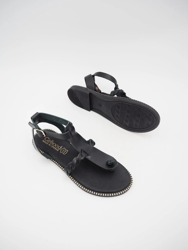 KOUFONISSIA SANDALES PLATES EN CUIR NOIR