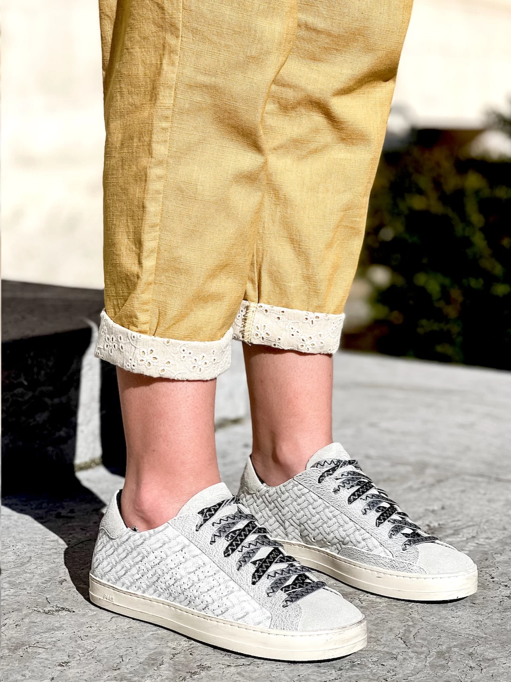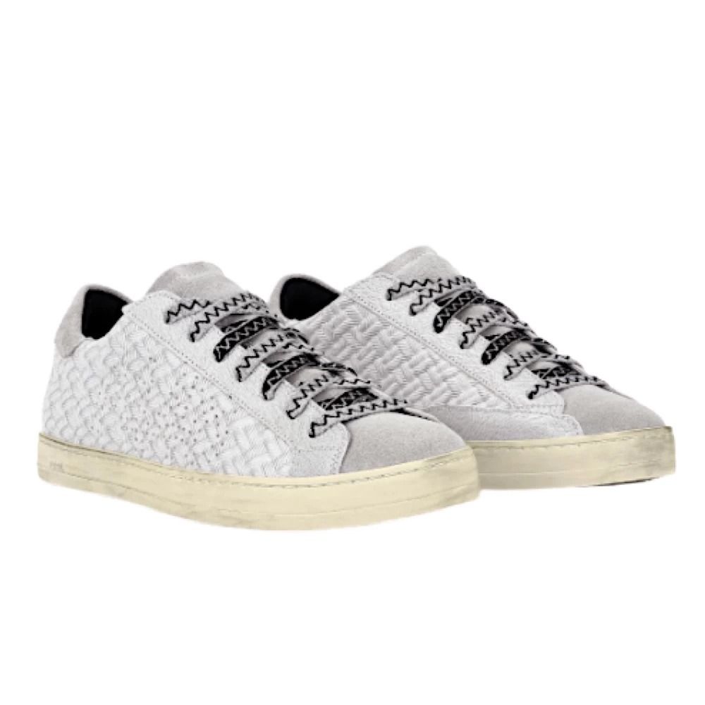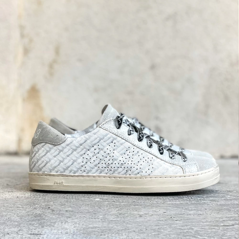 - Tige en cuir argenté à chevrons gaufrés avec logo P448 perforé