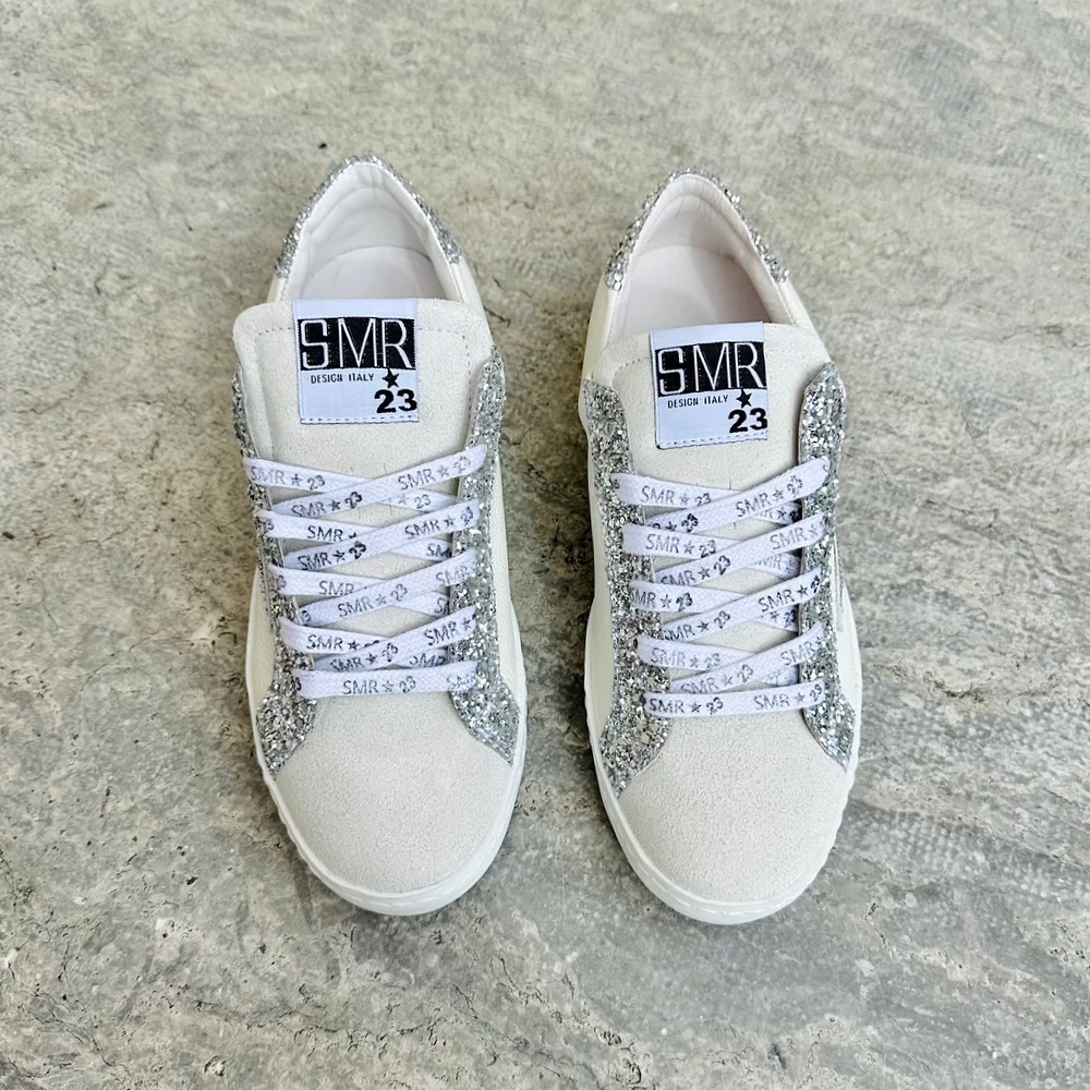 - Composition: Tige cuir et cuir suede avec paillettes